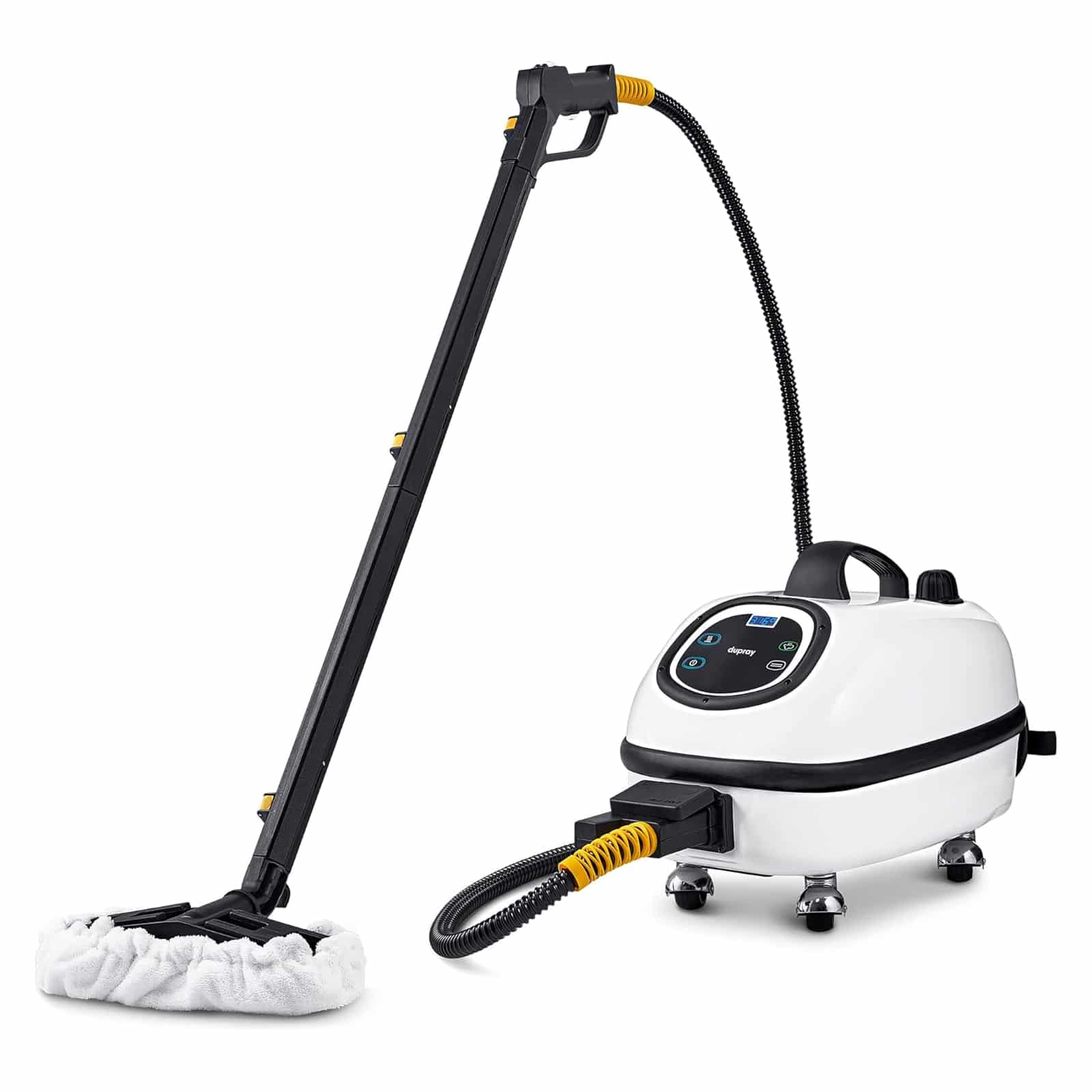 El Dupray Tosca Limpiador A Vapor ejemplifica limpieza de tapicería de grado comercial en un paquete refinado diseñado para usuarios exigentes. El sistema de control digital proporciona gestión precisa de temperatura y presión, mientras que la caldera de latón hecha en Italia asegura durabilidad excepcional para uso profesional a largo plazo en negocios o hogares grandes.